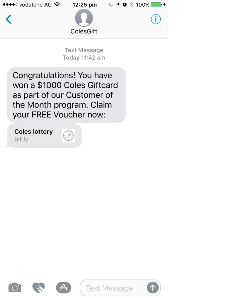 I always received a message from Coles telling me that I won something... gift cards, etc... and when I open the link, it just shows crap like urging me to participate in a survey or else letting me to click an option for the prizes which are CRAP!