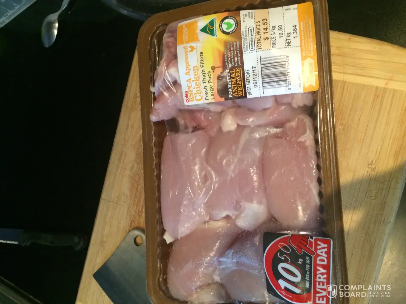 I bought a box of Coles Chicken Thigh Fillets on Friday the 1/12/17 with an expiry date of 6/12/2017 .