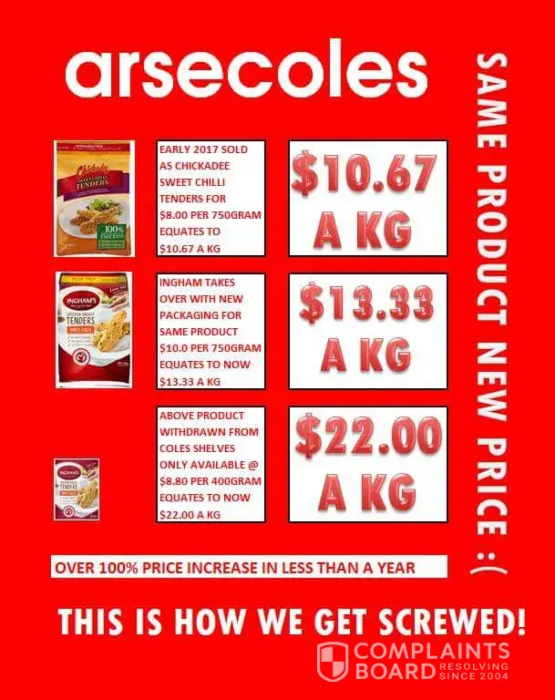 Some may remember that early this year I had a little rant at coles for working with inghams to produce a 25% increase on this product which is nuts to expect it goes unnoticed but now omfg, my blood is boiling that is more than 100% in a year. Please share far and wide. This is just one product. You [censor] (coles & inghams) must think we are nuts. How do you justify this?