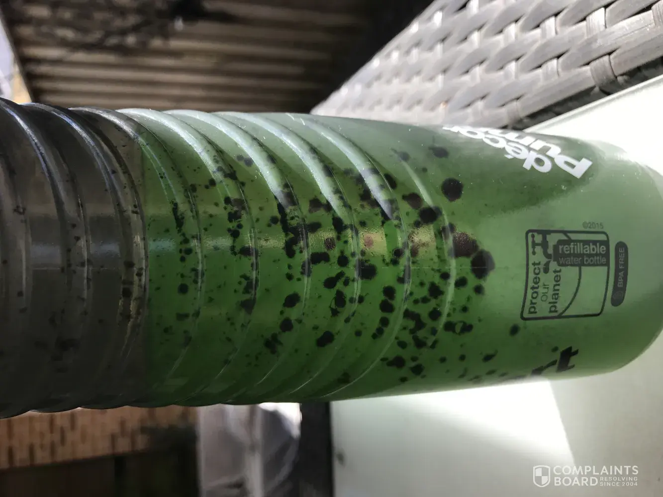This is the second time this has happened the first time I thought the new bottle I purchased had not been cleaned after the manufacturer of the bottle. And yes I rinsed both bottles prior use. Not happy.