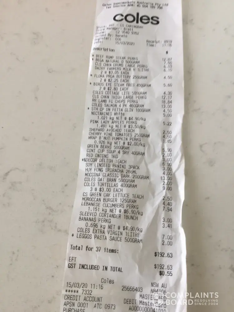 Then on Friday 13 march was on the phone to customer service for 2 hours 46 mins 13 secs. Bad customer service again. Then on Saturday 14 march got a text from the driver that my order is coming. I texted back to send order back to coles. Driver rang me and I said that the order needs to be sent back. I expect a $100 gift voucher for this disgraceful customer service. Email address iceman.[protected]@gmail.com
