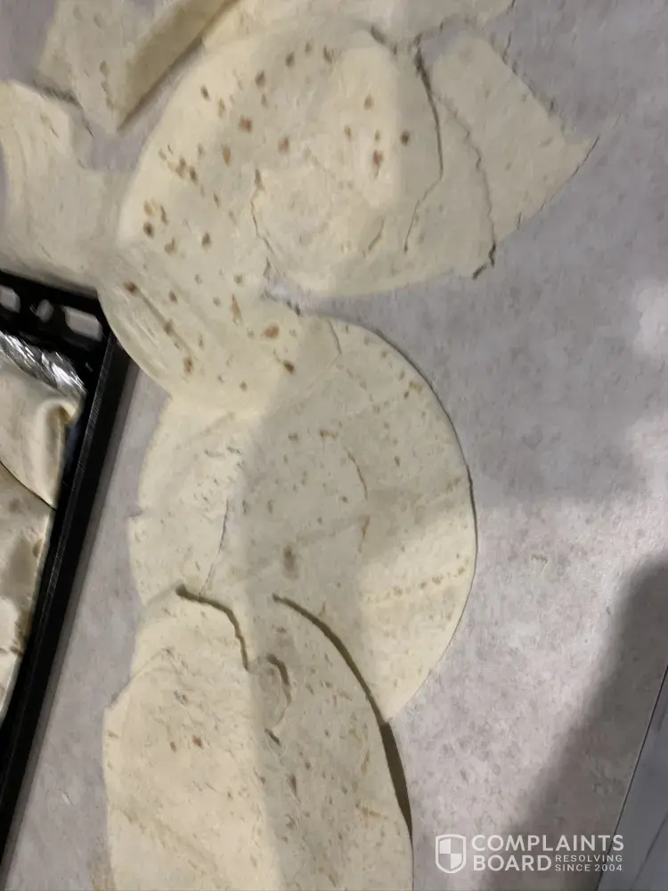 I purchased 2 packs of Old Elpasso tortilla wraps ( large size) and a Madeira cake this evening to find that the cake had been frozen and was wet and crumbled. The Tortilla wraps were all stick in the middle causing them to break and not peel apart . Such a disappointment when a filling was prepared and we were unable to complete the wraps as they all fell apart. I'm assuming they'd also been frozen and stacked tightly causing them to break in this way. This has made me consider swapping stores and shopping at ALDI or Woollies as I don't have funds to waste on food that isn't edible.