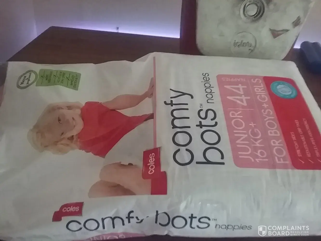 I recently purchased coles comfy bots nappies infant size as previously using these in newborn size and infant size. Only to find that the nappies have changed and are meant to be "new and improved" the nappies in fact are NOT new and improved at all. The old nappies are way better and preferred over the now new ones. The new ones don't have the elastic waist band, tabs are shorter, the length is shorter. Very unhappy with the so called "new and improved" nappies. The are definitely unimproved.
