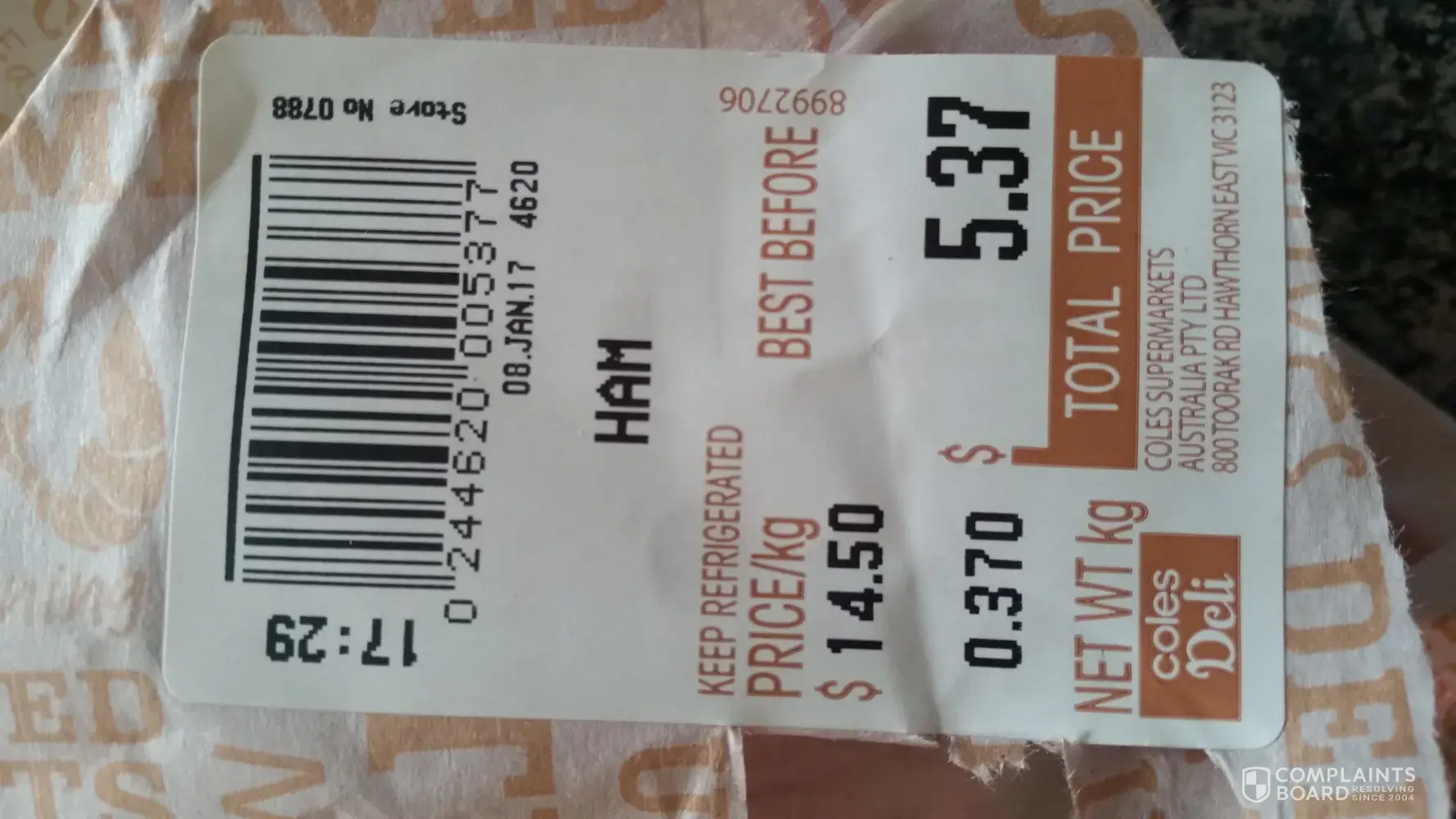 Bought sliced ham on 8-1-2017 at store 0788 at 17:37 no best before date. Also bought sliced bertocchi silverside at full price at $23 per kilo same day same time best before date [protected] I would expect it to last longer than just over one day. How come the best before date is on bertocchi silverside and not on the sliced ham. The best before date should be desplayed on all the deli meat so the consumer knows how old it is before purchase selections.