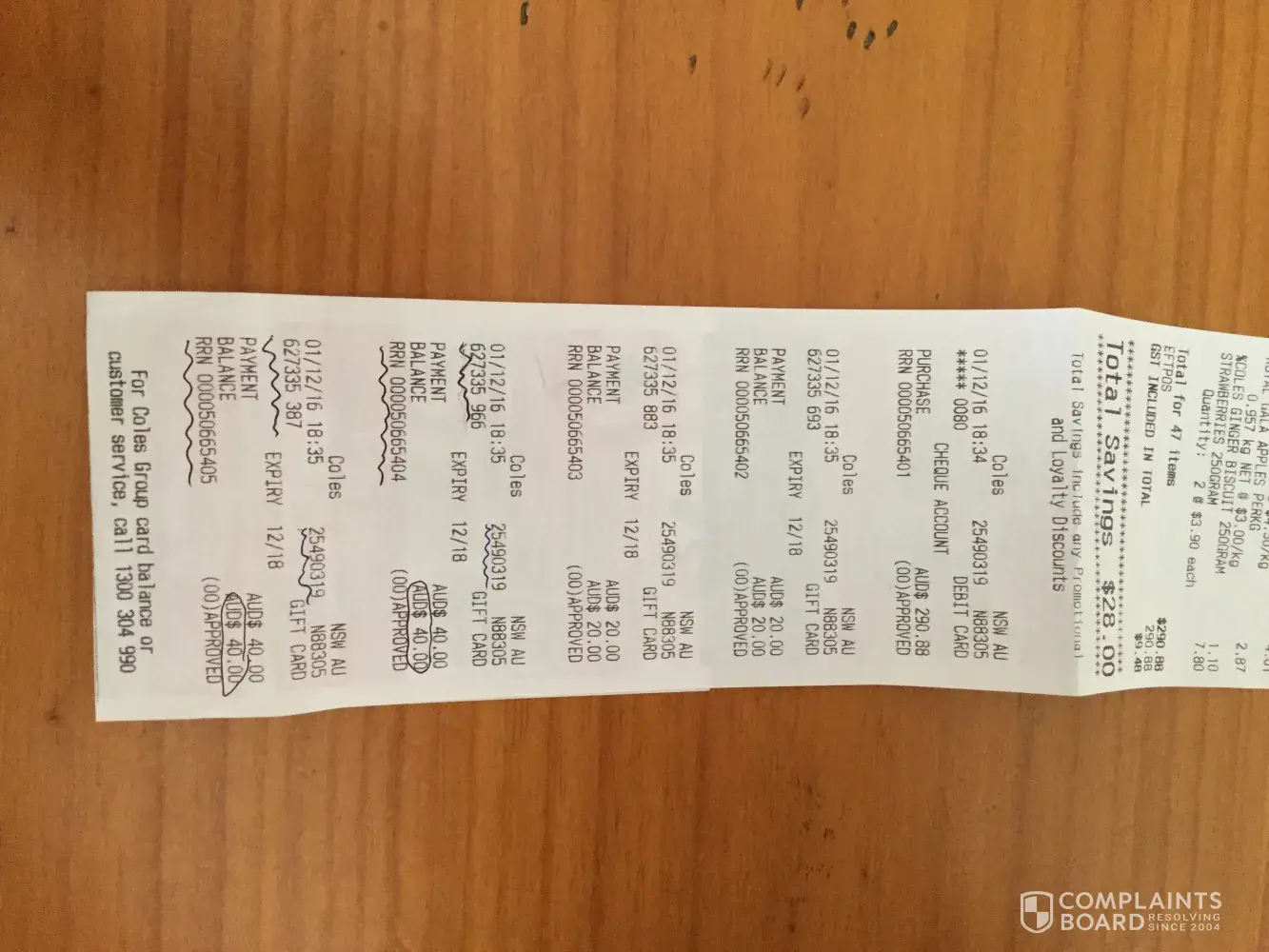 I rang the Coles group gift card customer service [protected] number from the receipt to enquiry whether they can be cancelled.