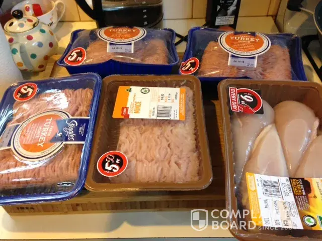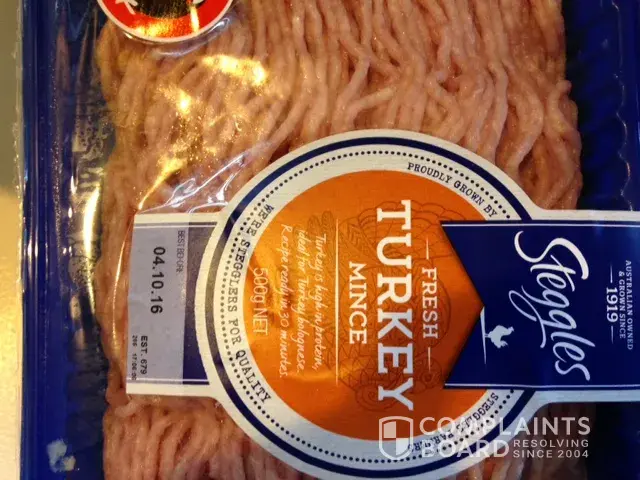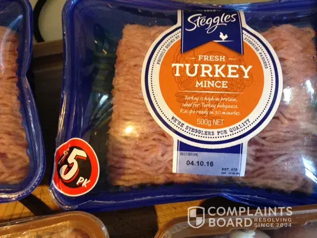 On Sunday 25th September we bought multiple meat products and transported them to our fridge within 15 minutes. They have been in the fridge together (as you can see by the picture), however, the Steggles Turkey mince - 3x packets - have expanded as if they have been out of the fridge.