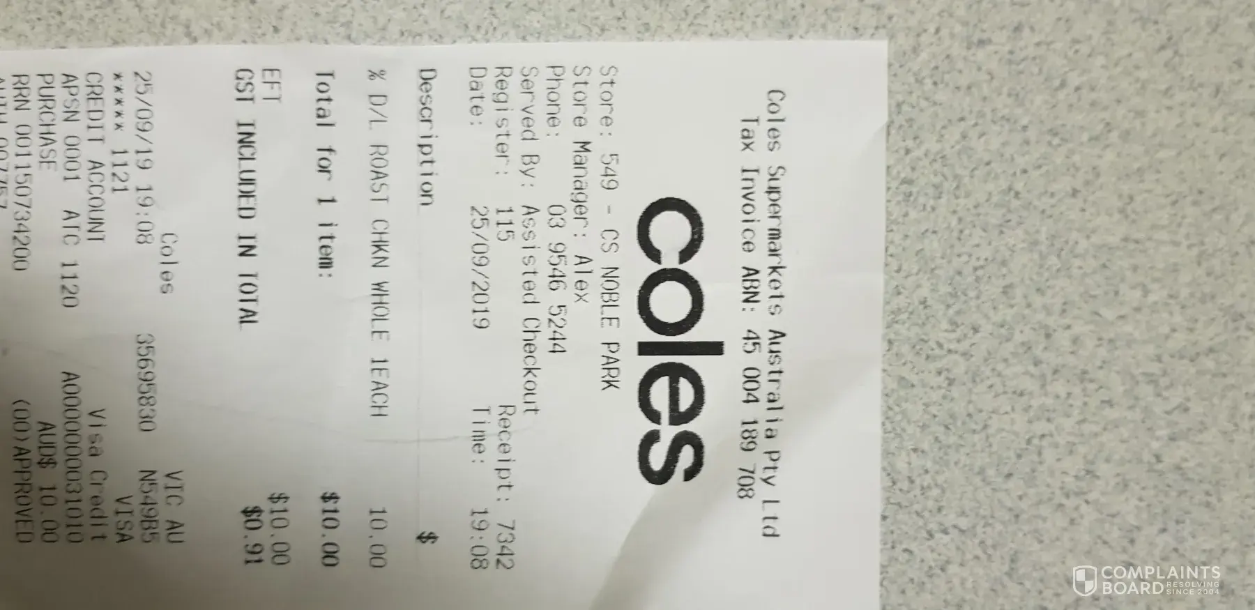 Valued customer to Coles is very upset.