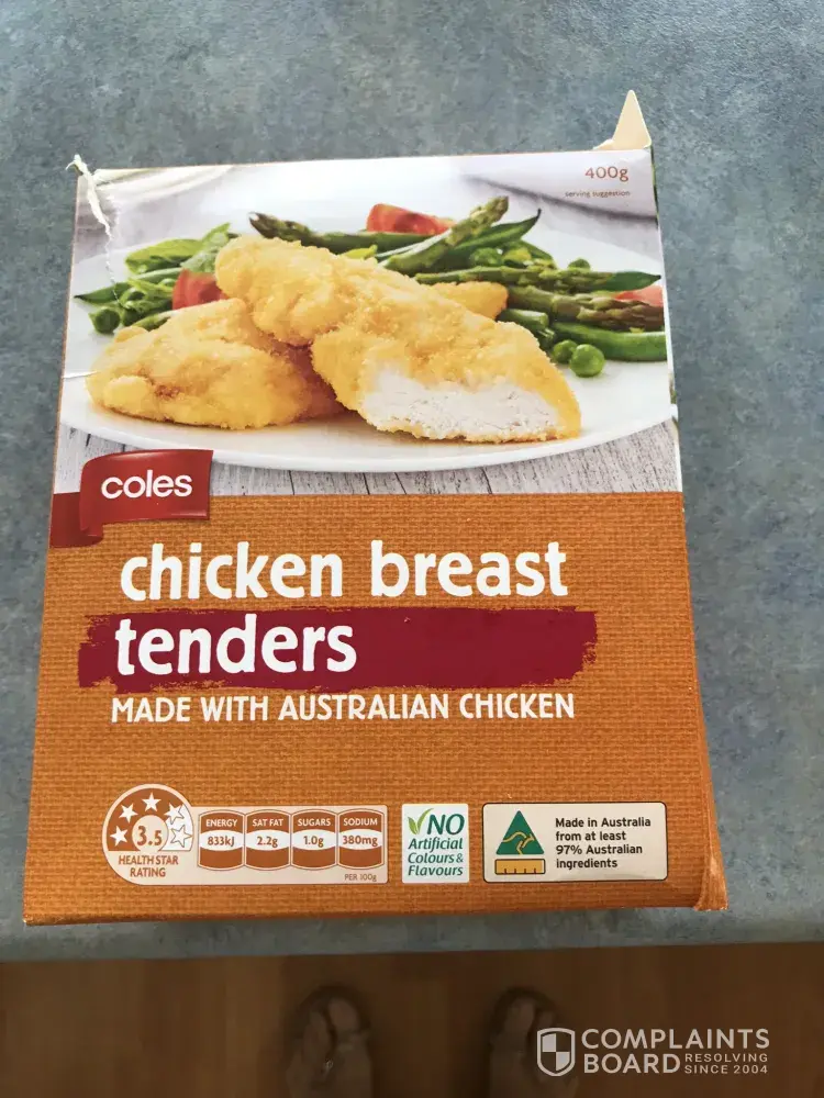 Very disappointed to find a piece of bone in a chicken tender from Coles, which was in the frozen section. I had given one to my 3 year old granddaughter for dinner, and she spat out a piece of bone, (picture bellow) although small it was very sharp. Thankfully she didn't swallow it or it didn't do any damage. From now on it's fresh roast chicken, which i...