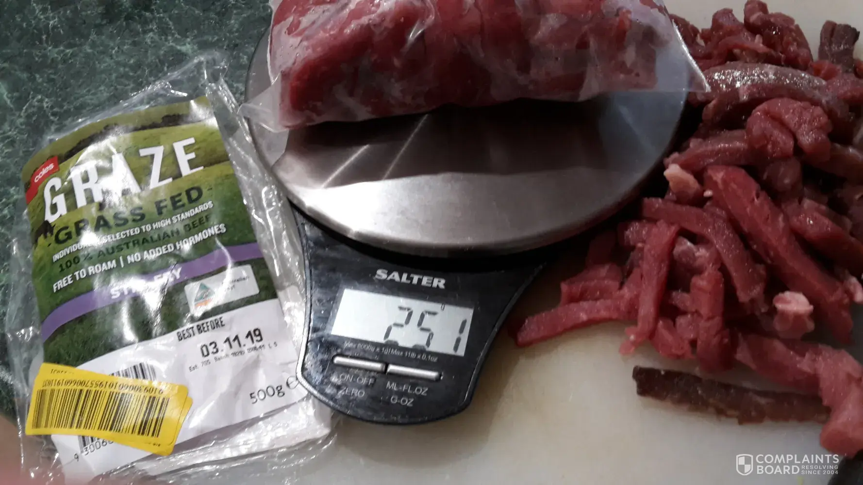 Sunday the 3 Nov i purchases Coles GRAZE - Grass Fed - stir fry beef.