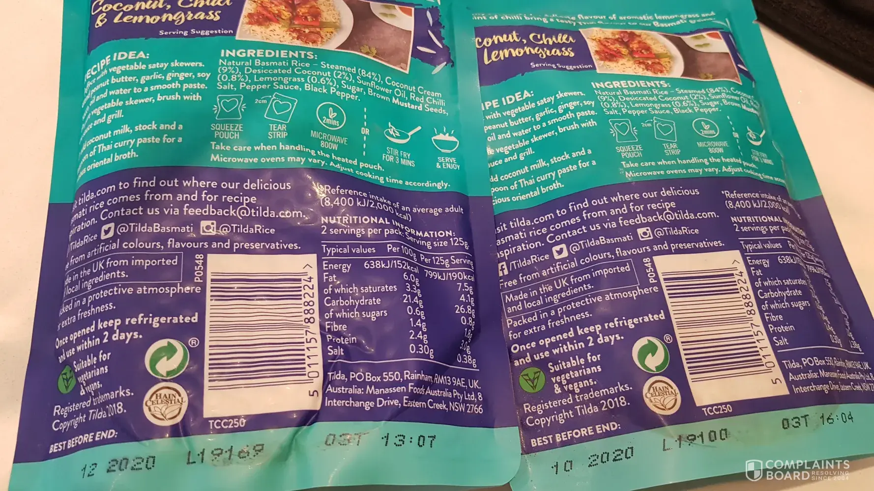 I have been buying the Tilda flavoured rice microwave sachets from Coles Uni Hill for a at least 12 months now. They are a quick easy lunch option when you add a can of tuna. However, on a couple of occassions upon heating the rice & pouring the contents into a bowl I have discovered clumps of mould. The last 3 sachets I purchased seemed very loose in the packet (like maybe air was inside) but didn't think too much about it as it looked fine. Today I gave it to my daughter to eat & after eating half she asked what the green lump was!