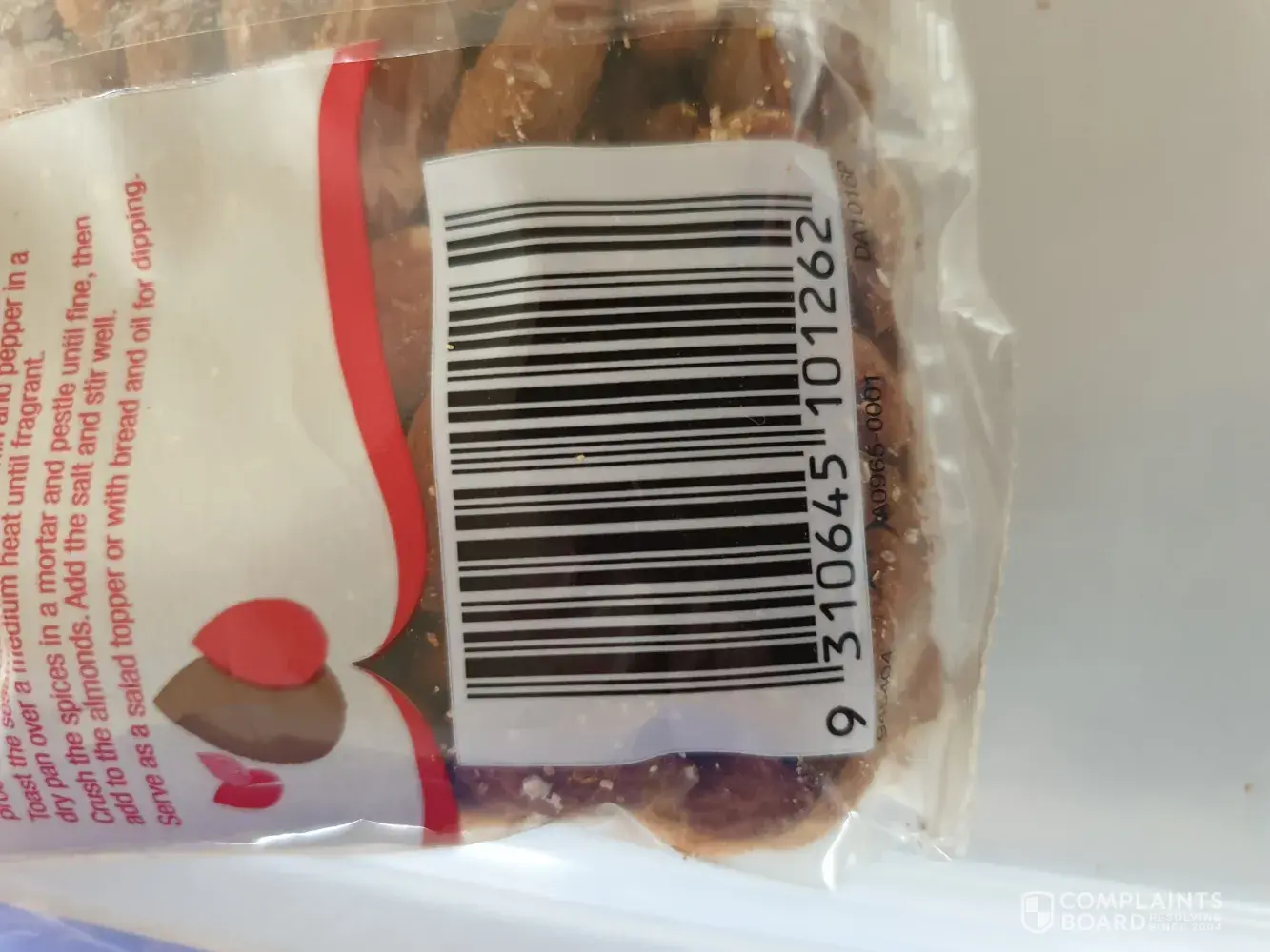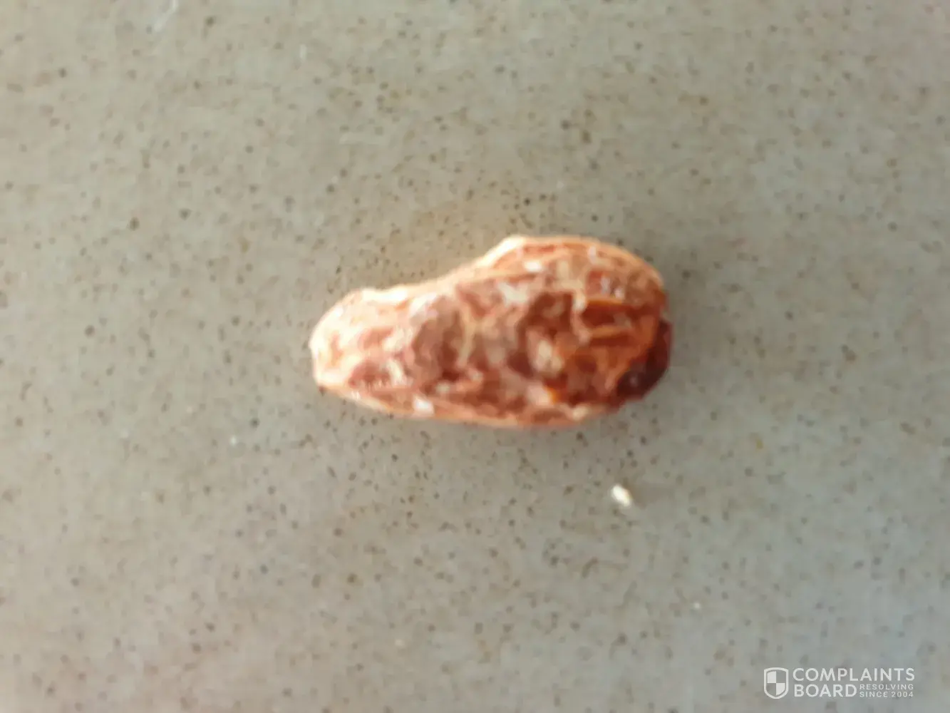 When eating some almonds which are part of my daily eating habit i bit down on one almond which immediately caused pain in my teeth. You can see in the attached pic that i did bite of a small piece of the almond. The almod is soo hard i am grateful that i dident break a tooth . Attached are pice of the rock hard almond and the packaging. I am not even sure if it is an almond