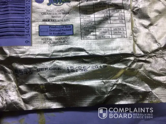 Didn't get a call yet so filing complaint here as this is very serious and need to be sorted out. I think there should be a product withdrawal or recall as I could still see the same butter on the shelves when I went to the Coles this morning and someone could get seriously sick.