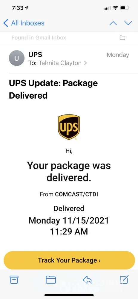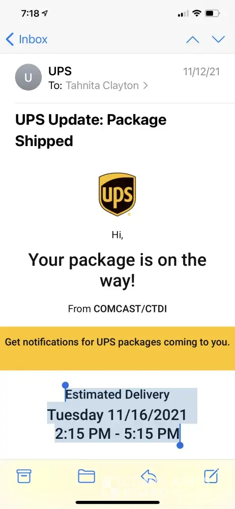 12Nov - 6:45pm Received UPS email box will be delivered 11/16