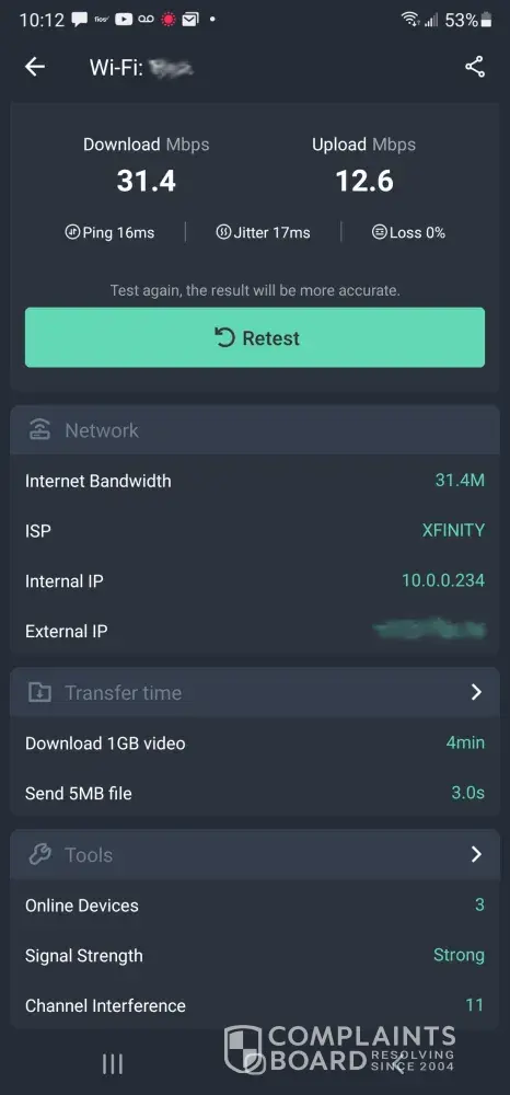 My account number is [protected]. I have been trying to resolve a problem with my internet service for almost 6 months. I pay for 200 MBPS. Back in August of 2020 my security system which includes wireless cameras started to fail. I have an 86 year old mother who's health is failing and I need to be in touch with her doctors over video call to keep her medication up to date. I have been on the phone dozens of time since last August. First issue is you cannot reach a real person until you go through the whole automated reboot of the entire system. Some times that meant stepping through the whole program 2 or 3 time a week. I have been sent a total of 3 new modems/ wifi routers. They have tried all kinds of remedies but still I have major drop outs of service. I have 2 speed check apps which sometimes show that I have 120 MBPS, other times I cannot get above 10 MBPS downloads. I never get above 120 MBPS. If I could get a steady 120 MBPS, I would not complain even while paying for 200 MBPS. Forget about upload speeds. It never tops 15 MBPS. I finally convinced the customer service person on the call that the only thing that we have not tried is a service call. She said that Covid 19 prevented that but my argument is that this is as a necessity just as my electric service is. As I write this, we are scheduled for a service call 12 hours from now. However, I feel I have been ripped of the las 6 months and I should be credited for the lack of service. The attached screen shot was taken at 10:30 PM.