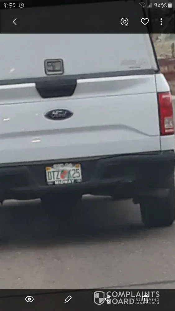 I would like to take a moment and let you know that a driver in one of your company vehicles was speeding recklessly through a construction zone. I've attached two pictures to show the license plate and the construction zone area. He was driving at least 70 mph due to the fact that he flew past my vehicle and another vehicle. This driver could've hit any of these construction workers that were working and that is a very big concern of mine. The speed in this area is 35 due to it being a construction area. The only time that he slowed down was when there was a vehicle in front of him so he couldn't fly through the work zone.