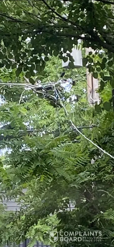 Thank you for nothing! With hanging cord and tree branch touching the electrical wire