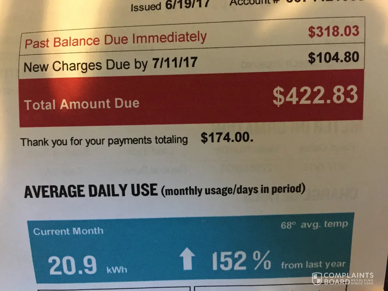Her bully tactics were as if I were in every way guilty regardless of what happened. I'm sure if there were meter readings the place was probably vacant. The rep said that I should have had the service turned off. I never had it turned on... I will contact the Dept. Of Consumer Services.