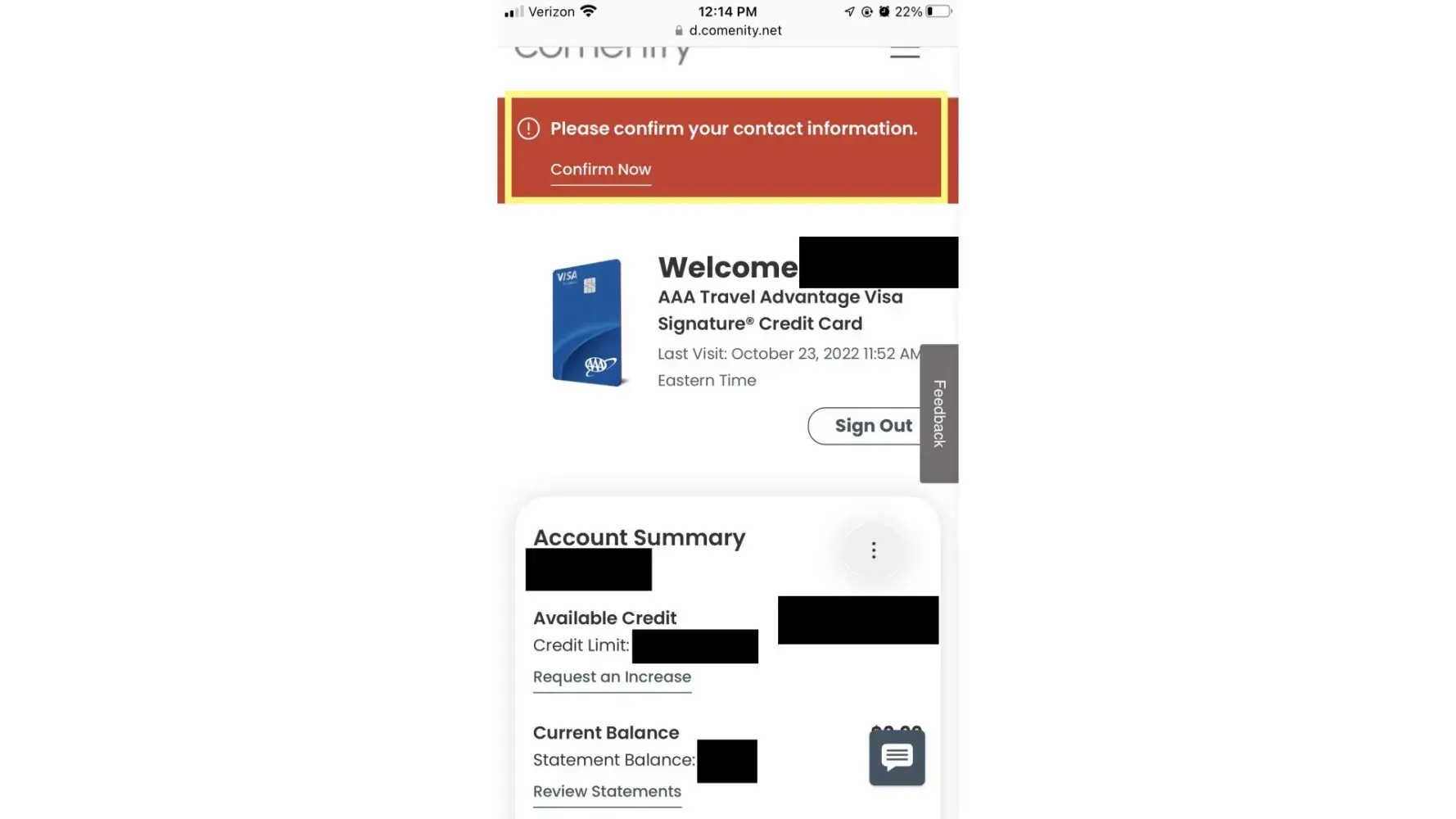 AAA Visa Signature credit card with comenity .