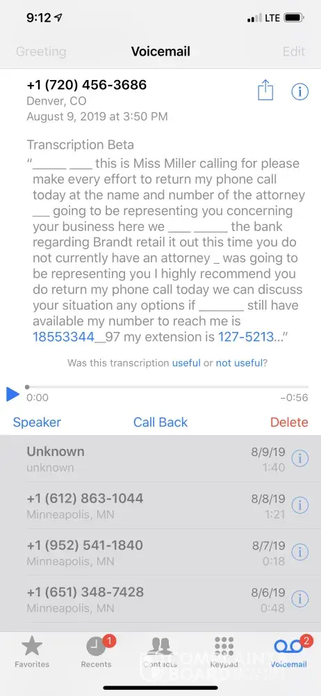 I receive 3-4 calls from Comenity a day. These voicemails indicate that I should seek legal representation on the matter of my late payment on my credit card. They also state I should provide my attorneys information. Why do I need an attorney for a late credit card payment? They called me this morning and it was a male saying that my "case" had come across his desk and that I needed to have my attorney contact him. This practice seems highly unethical as I have received no paper document indicating I need to be represented.