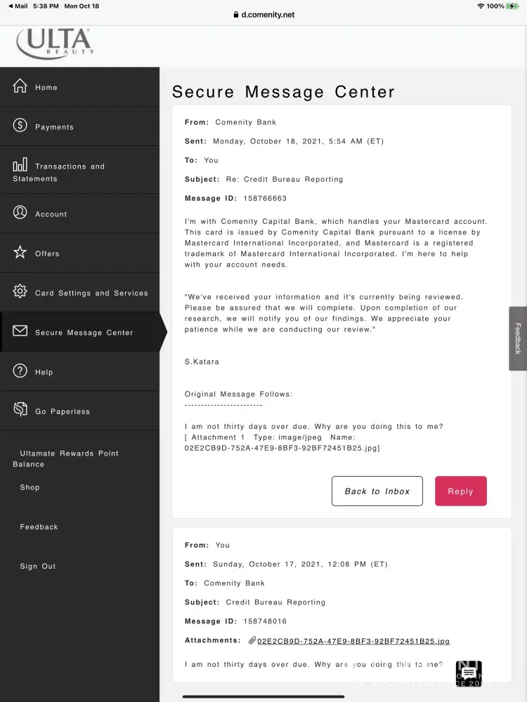 This is just sheer narcissistic, rude incompetence and your company should be ashamed of its self for supporting these actions.I am reporting this incident to the banking commission and to the better business. I cancelled my master card today 11/28/2021.