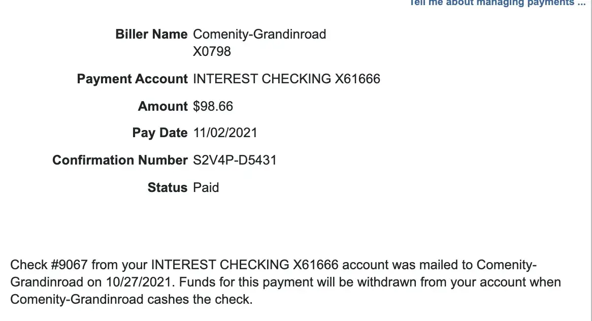 As I read posts from others, I see that I am not alone in having this problem. I use electronic banking and always pay my credit cards in full and on time. I recently paid my Grandin Road card in full. On 10/27/21, I electronically paid my bill. PNC Bank sent a check (see attached) to be paid to Comenity on 11/02/21. The due date being 11/04/21. However, when I got my new statement, it stated that my payment was late, received on November 5th, charging me a late fee and finance charges totaling $28.27. I did call Comenity customer service and they told me that they could not waive the late fee because they had done so previously.