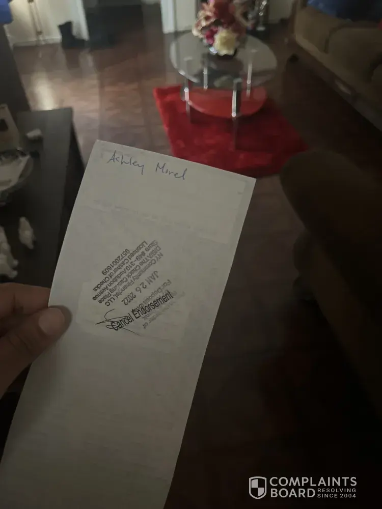 At approximately 2:25am, on January 30, 2024, I arrived at 535 Southern Blvd., The Bronx, NY 10455 (CFSC Check Cashing) in an attempt to cash my check. I was informed that I had a file with CFSC since 2019 via Fordham Road (CFSC Check Cashing). After, making me sign the back of my check, the CFSC employee informed me that she could not cash my check. When I asked to speak to a supervisor, I was denied. I then requested the ladies name to no avail as well. The CFSC employee did cash the man’s check, who was after me, without any problems. However, I was able to snap a picture of her because she denied me my right to speak to her supervisor or have her name to be sure that when I come back in the AM, I can verify to whomever is working that I signed my check in front of her.