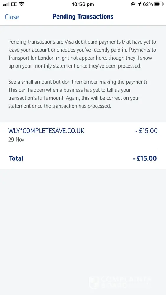 Auto deduction of gbp 15 from my visa credit card which I do not have idea when I participated as complete save member.