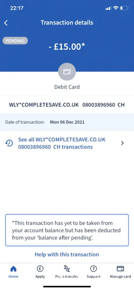 WLY Completesave.co.uk have taken monies of £15 per month .