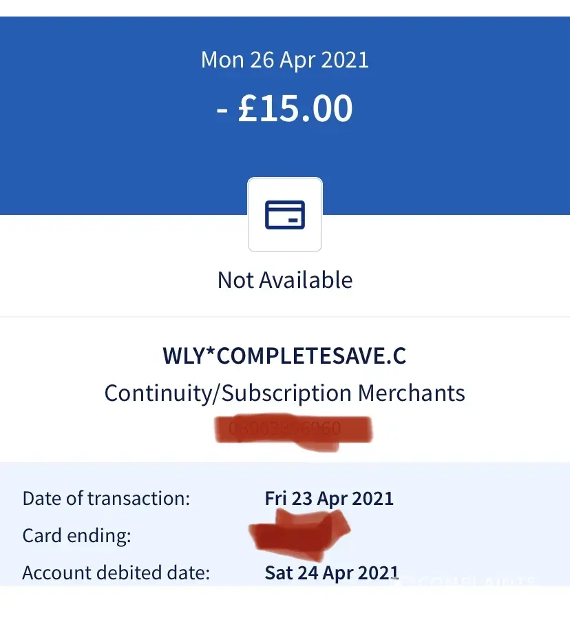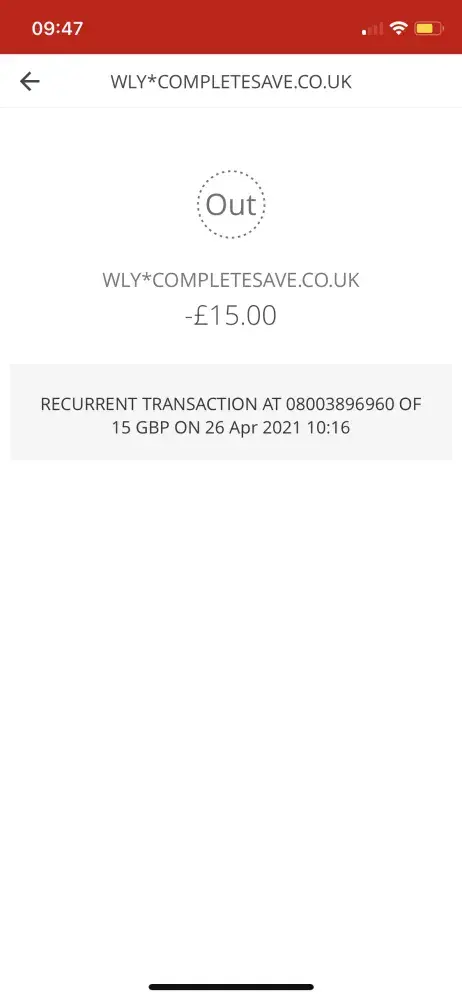 I've just become away that since Nov 2020 (6months) Complete Savings have been taking £15 a month from my current account.
