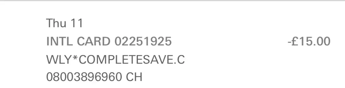 My names Manon and I'm just inquiring as I have had £15 taken from my account by WLY*completesave.co.uk