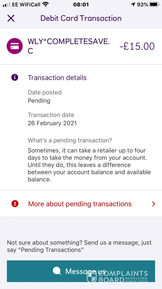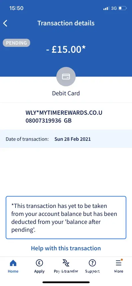 Pending transaction on my account