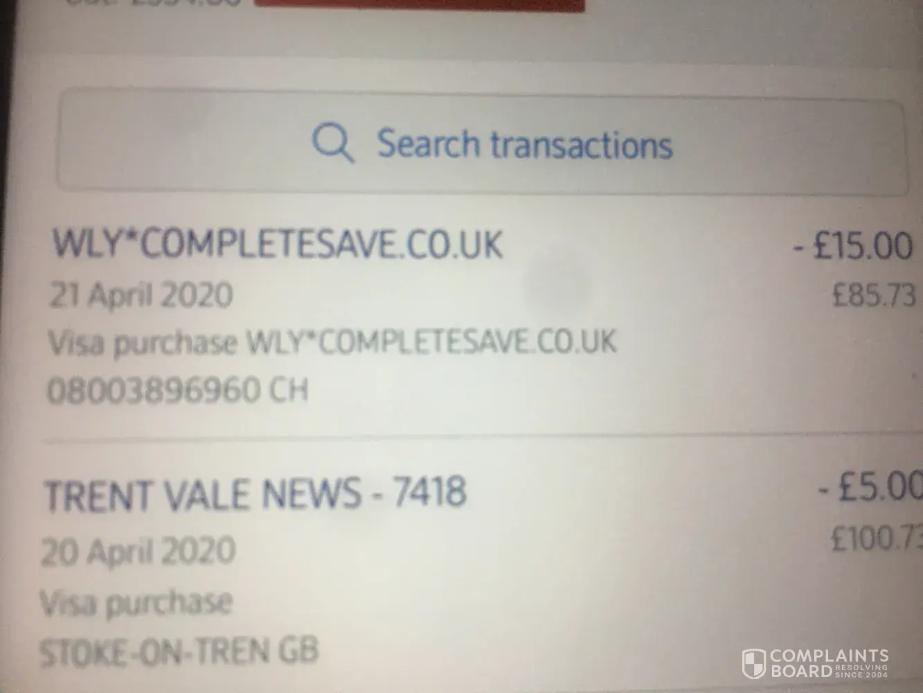 Checked bank details today to see 15 pound pending payment to a completesave.co.uk.