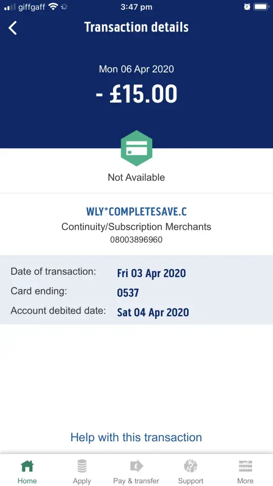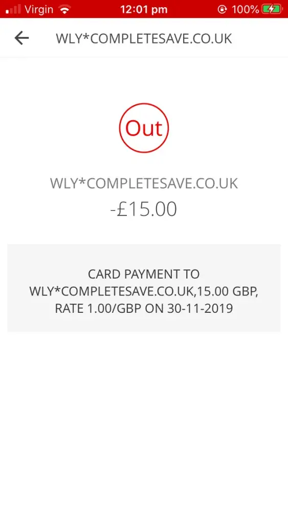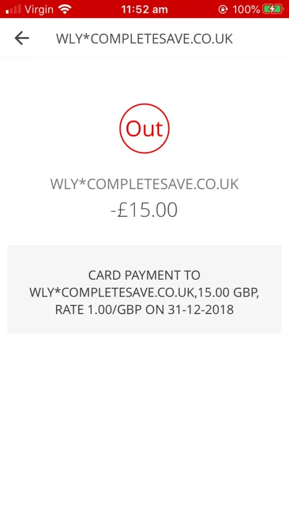 I do some online shopping and I have a bank app I noticed money missing from my current account and this ‘complete saving account' was a £15 transaction taken from my account, I am suffering like every one else due to the covid 19 pandemic and not having so much money etc and to have this scam happen really wasn't in an way convenient. I control my money not a two bit company I had never even heard of I'm mad and that's an under statement I do not need this carry on. This goes against any consumer rights I've ever heard of! Scam scam scam !