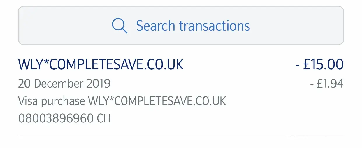 I have had £15 taken out of my bank account under the name ‘wly*completesave.co.uk', I have not given my name and/ or address of this website and in fact have never heard of them before. I would like a refund ASAP! I have not applied for anything and have not authorised any payments, I am with nationwide banking society and will be ringing them in the morning if nothing is done about this.