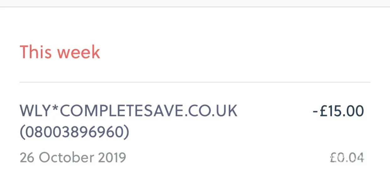 Right, I don't know why this is because I have no idea what COMPLETESAVE is, but £15 has been taken out of my bank account for the last 3 months and it says that it's from them, and I don't know what type of [censored] this is, but I want my money back right now because I am pissed off. So just give me the money back ASAP, it's not yours to just take out of my bank, that's illegal!