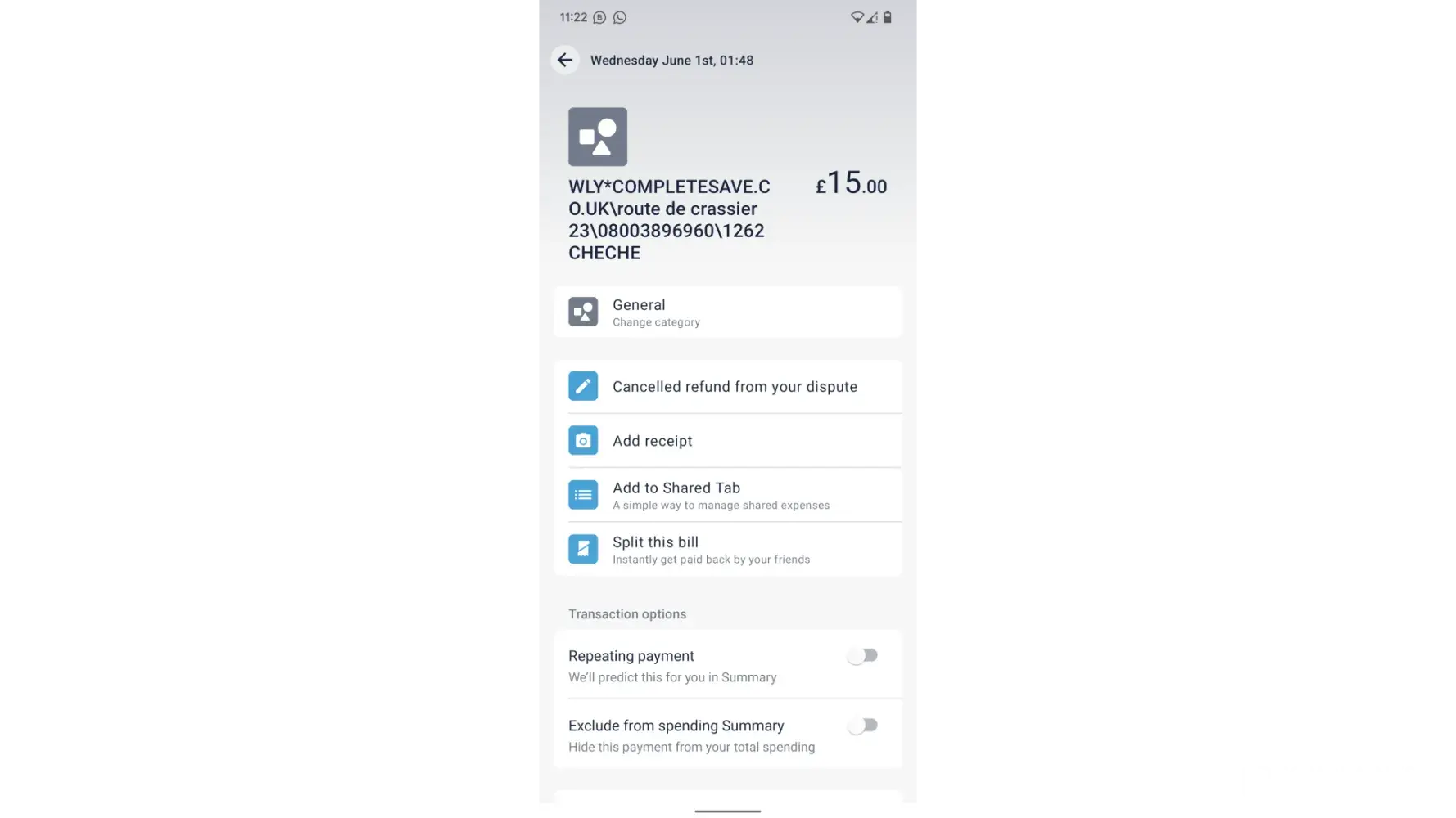 Disputed the transaction and got a refund of 15 pound back but the refunded dispute amount was taken back on June 1 Wednesday 2022.I think it's not fair as I'am not sure on what basis the money was withdrawn from my account.I believe I should get a refund and the money is taken without any consent.It would be great if I can get the refund ASAP