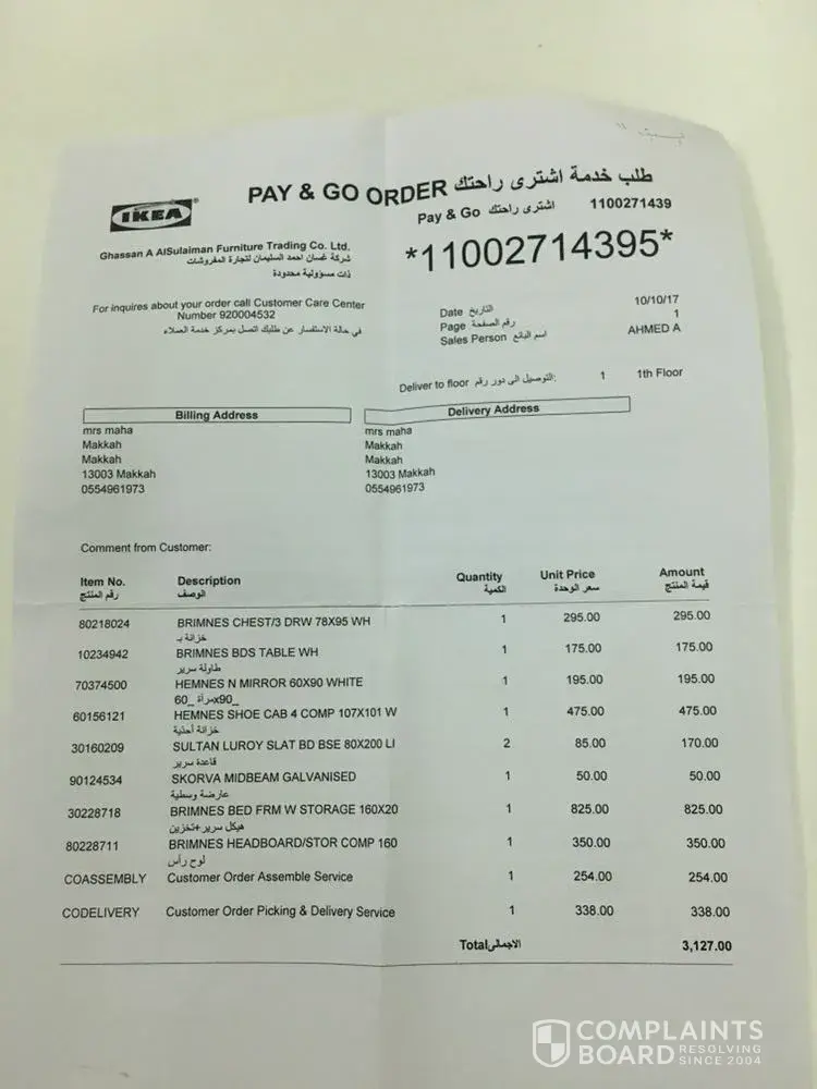 Verified customer This complaint was posted by a verified customer. Learn more