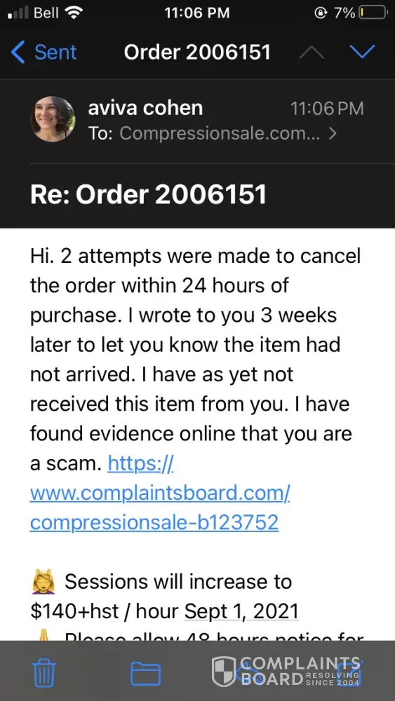 CompressionSale has received 50 complaints on ComplaintsBoard. The first reported case, I recommend not ever ordering from this website, was published on Jul 25, 2011, and the most recent complaint, Worst customer service ever!, was posted on Jul 25, 2023.