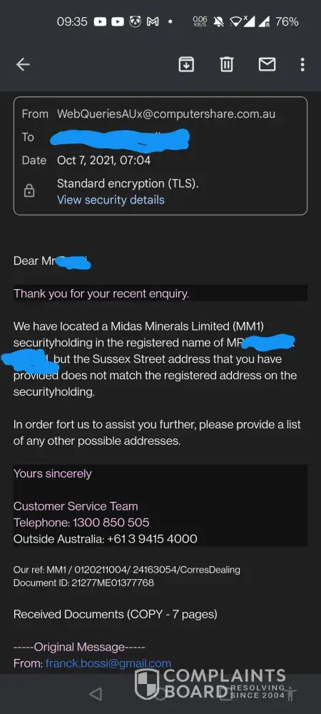 Desired outcome: I want to warn others from the frustration of dealing with Computershare