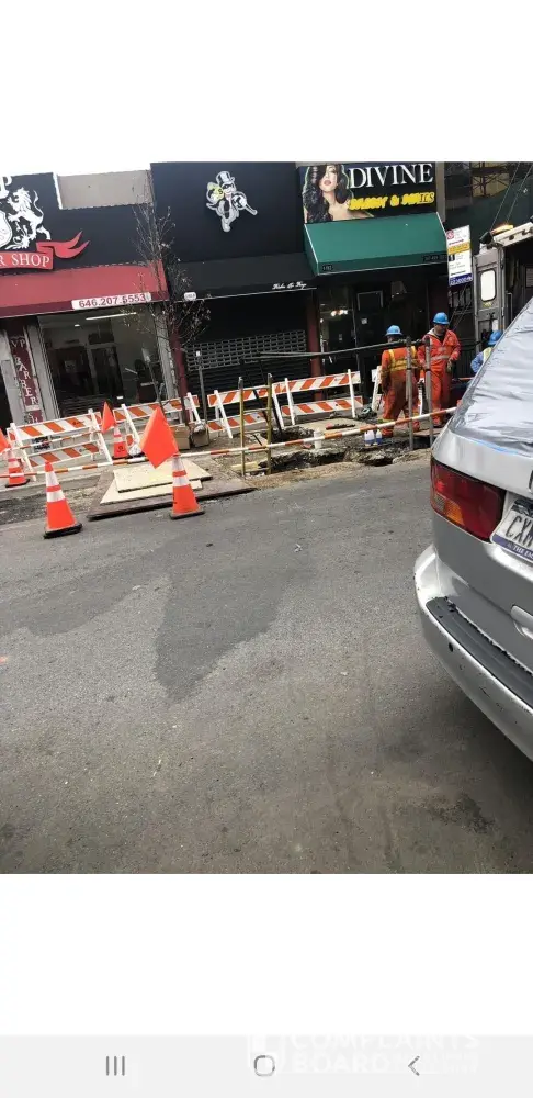 About 3 days, there are ConEdison workers working directly in front of my business establishment, to which, NO advance notice was provided; of their work on the sidewalk directly. No notice posted on my business gate or any of the other businesses either. I am unaware of a start date or finish date and I was NOT able to open my business because of this inconvenience.