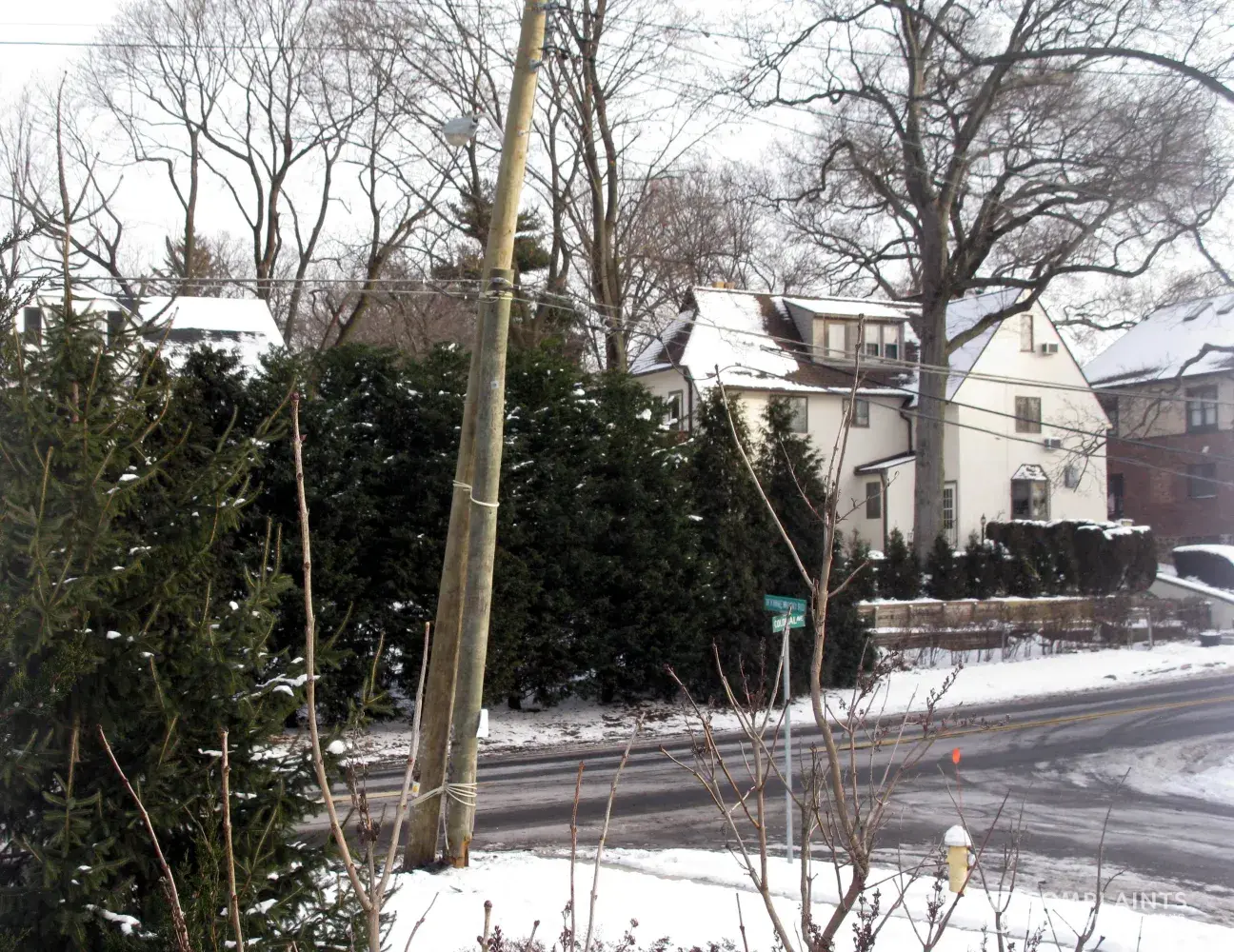 A coned wooden utility pole in pelham manor, ny has been struck twice by cars in the last year. Each time, power has been lost to several homes in the neighborhood. This pole should have some type of barrier protection installed to prevent future power disruptions. There should also be large safety reflectors attached to the pole to make it more visible at night. The pole is at the intersection of colonial avenue and wynnewood road in pelham manor.