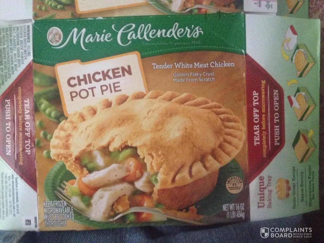 I had purchased 2 Marie Callender's Pot Pie and had one with stringy and hard broccoli in it. I called customer service said they would send me coupons to use when I purchase them again. Well I received coupons for meals or soups. I don't buy that! I feel like you are trying to make me buy your other products and that's not what I'm doing. So you didn't take the matter seriously after all. I'm not going to purchase them anymore. Thanks for nothing.