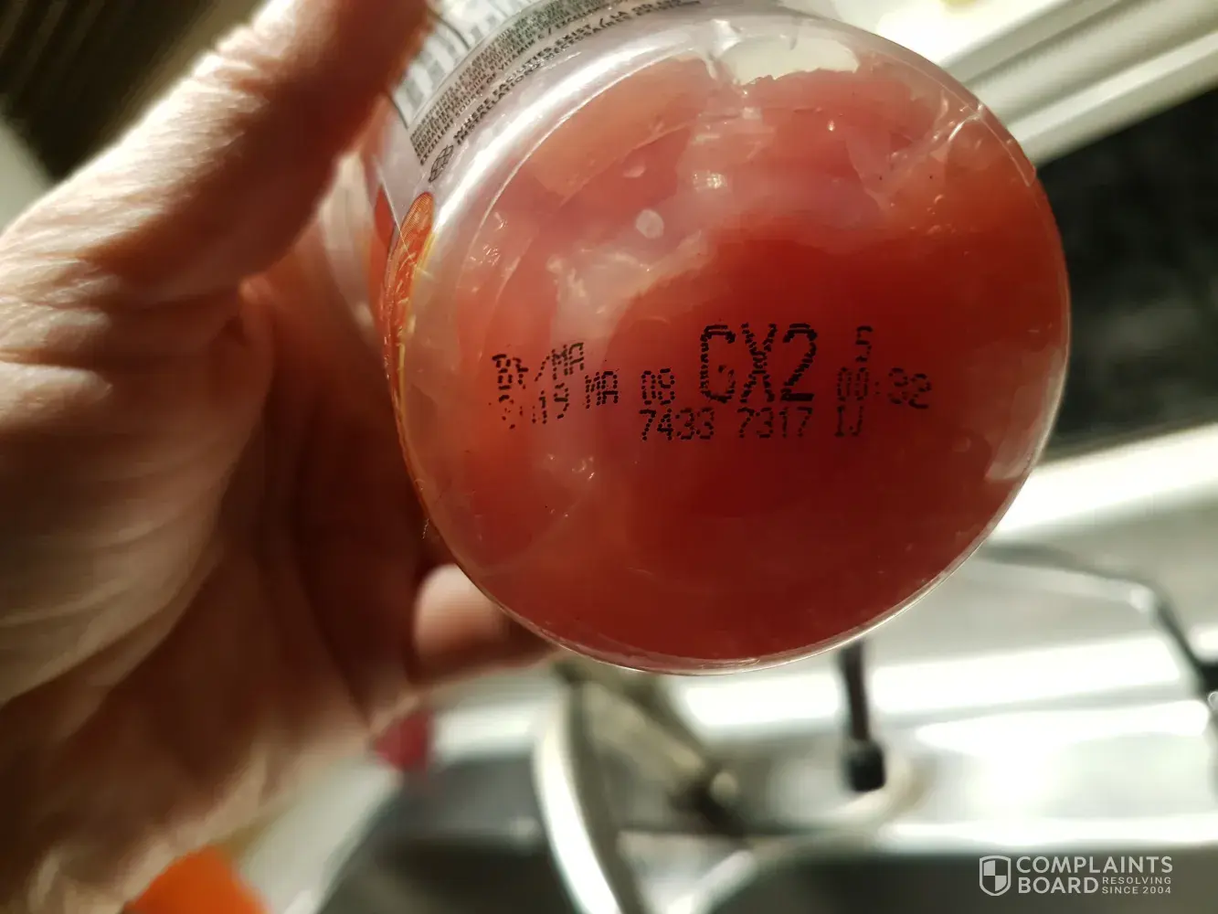 I had bought a box of 8 red grapefruit cups from superstore in simcoe ontario canada. When opened 2 days after buying I had noticed that 1 had leeked out making the bottom of box all soggy and another one the top of it was bowed up like it was going to explode soon. I opened that one to find it smelling fromented and tried it and it was bad. This is not the first time I have bought this 8 pack product to find some already spoiled or not sealed. I have pictures and codes that I will attach. It is march 4th and the product code on bottom is 2019 ma 08 so they are not expired yet.