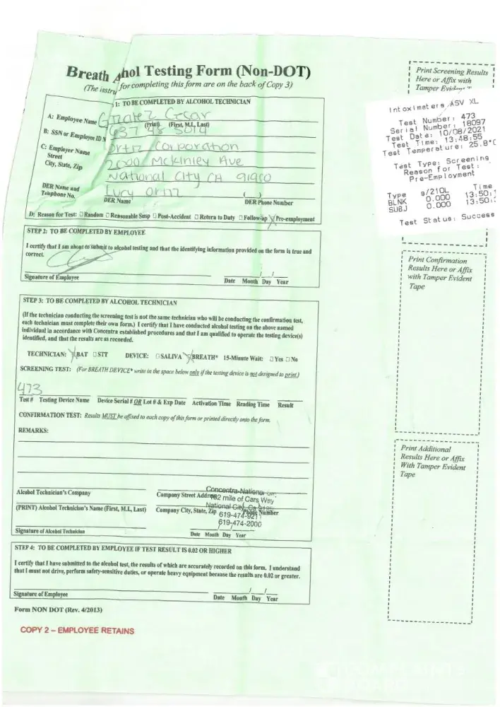 Read full complaintPre employment drug screen