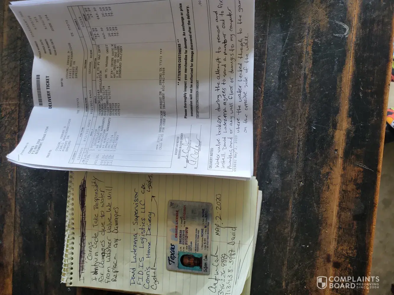 Original delivery date 4-30, that was canceled due to error on behalf of the store. Upon delivery Saturday may 2nd One delivery driver was in the car drunk and asleep the other came in and accidentally broke the Water Valve. water ran out my walls came out of the walls onto the laundry Room floor into the adjacent Room which was my game Room. I was told at 10:30 a.m. that a plumber was going to be sent no one showed up until 3:15 p.m. and it was not a plumber it was actually the technician that broke the water pipe and the drunken 1 that was sleep this morning. They went to lowes bought a part 6th the pipe that broke the small piece after cutting a hole in my wall And then told me they would try to find someone to come and fix the hole or they would at least let me know something by Monday or Tuesday. I have no real company contact, The contractor with on able to give me an actual name of who would be coming and if they're even related to the company. I have 7 people in my home Due to the pandemic my husband and I are both essential workers who need it to wash our clothes obviously. One of those people is my 72 year old mother recovering from a stroke. I had no clarity on if there's major damage inside the wall other than the water that was flowing out into 2 rooms there is no confirmation from the company that and a real company is being hired to come out and take a look and assess any damages. This was the most unprofessional experience I have ever had, and of course my wall still have a hole in it. Ticket number 1012438 needs a thorough investigation. We can be reached at [protected]@gmail.com or [protected]@yahoo.com