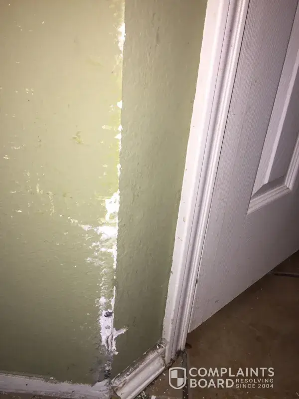 delivery service damaged the kitchen walls and tile with a refrigerator.