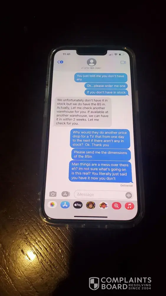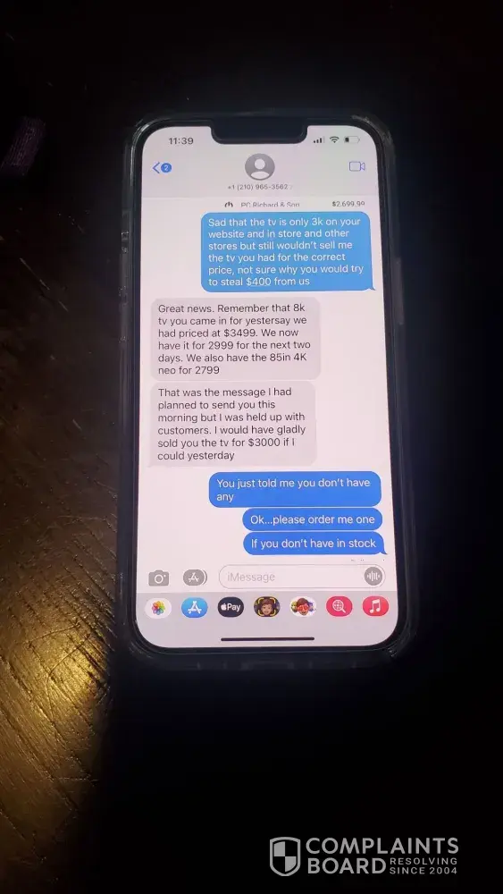 We applied to get a loan for a TV I have been wanting upgrade for about two years but just had to replace my wife's TV last year so we waited. I had been studying to know exactly what I wanted. We got approved for $5,500.00, we applied online. Then Shaq from the Forum in Selma, TX sent us a text to see if he could help we said yes and he told us to come in after 2pm. We got there right about 3pm, waited about 10 to 15 mins for him to finish helping another person. He then came to help is pick a TV out. We decided on the NEO QLED Samsung 75" there was the floor model that was marked down to $2,700.00 $299.00 off original price. I asked do you have a new one, he said yes. I said I'll take it he said that will be $3,400.00 I said it clearly says on the tag original price is $2,999.99. He said hmmm, let me get my manager, so young guy ce out and said it's $3,400.00. I said it's marked as original price as of 02/18/2022 at $2,999.99. He said well that was a typo and removed the tag. I said we'll I guess ypu lost a sell, I didn't come to look at tvs I came to buy one. Then I think the real manager came out and asked them what happened as they were arguing and we walked out the door. No one tried to talk to us to see if they could clear things up or apologize for false advertisement in their own store. I guess I'll have to go buy it somewhere else now. Pretty sad I wasted all this time, excitement, energy for a huge disappointment and just feel gross now. I guess the name fits the description there at Conn's. I have pictures of the tag before they could remove it. The tag was made on 02/18/2022 it's 02/24/2022. Sad the original price of an old TV a 2021 model which will replaced in two weeks with a 2022 model went up $400.00, I really wanted that tv. I would have loved for them to honor there original price marked as of 02/18/2022 on 02/24/2022 on their 2021 line up while I was in the store. Sad to see it was so empty as usual I go to the forum a lot I'm surprised they didn't sell me the new one for $2,700.00 since it doesn't look like they sell anything in the forum location