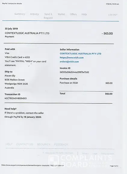 wish.com is a fraud company and any related business in Australia called Contextlogic Australia P/L.
