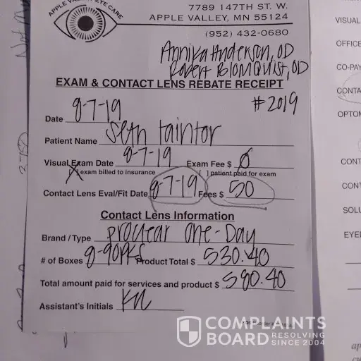 Hello, I purchased one years worth of contacts with the incentive of coopervision's rebate program. I submitted all necessary paperwork, and was told my receight was invalid, and eye exam copay with a description of why I was there was also invalid. The sales associates handed me both, and told me that is what I would need to submit for my rebate. This rebate is a scam; the idea is you will give up after an extreme hassle. Customer service is also very confrontational. Poor service, poor product delivery. Will pay the extra money for another contact brand moving forward.