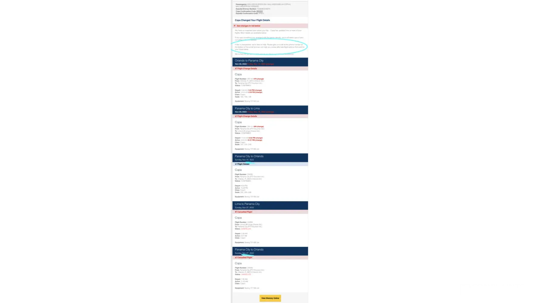 Copa cancel my ticket to POS return flight without warning